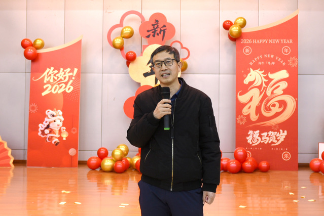 活动最后,范胜君院长发表总结讲话。他对本次迎新春联欢会的成功举办表示祝贺,回顾了过去一年学院在学科建设、师资队伍、科研成果、人才培养等方面取得的显著成就,同时介绍了2026年的重点工作。他强调,新的一年充满机遇和挑战,学院将继续深化教育教学改革,加强学科建设和科研创新,努力提升学院的综合实力和社会影响力。他鼓励全体教职工在新的一年里以更加饱满的热情、更加昂扬的斗志、更加务实的作风,为实现学院的发展目标而努力奋斗。