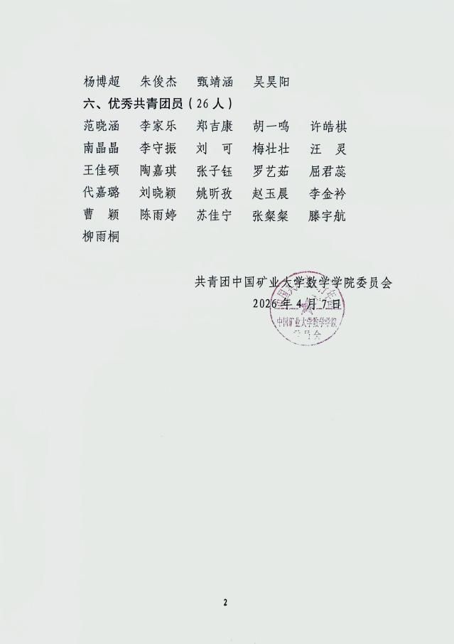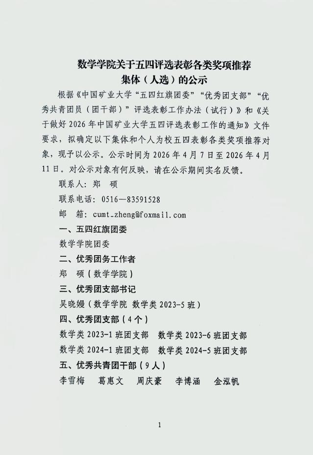 数学学院关于五四评选表彰各类奖项推荐集体(人选)的公示