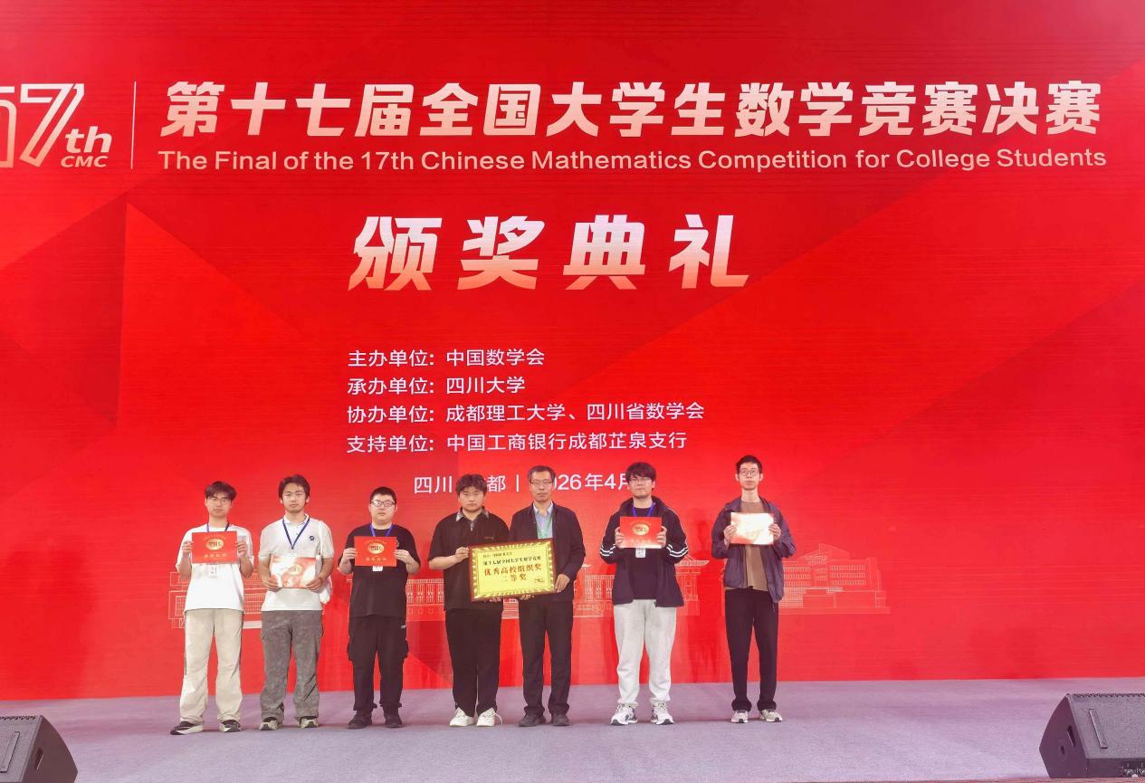 4月17日至19日,第十七届全国大学生数学竞赛决赛在四川大学举行。我校学生获全国一等奖2项,二等奖3项,学校获“优秀高校组织奖二等奖”,是我校在历届比赛中取得的最好成绩。