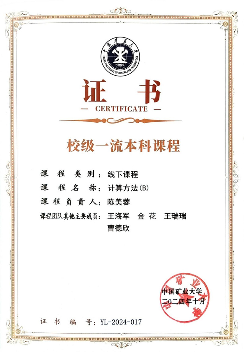 陈美蓉等. “计算方法(B)”课程,中国矿业大学一流本科课程,2024.